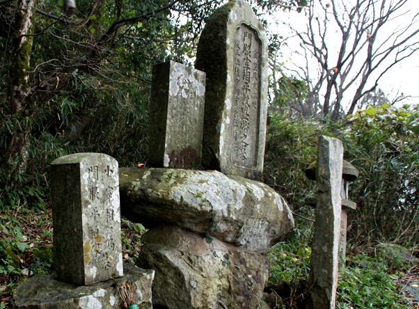 (せとよりよる、ふなでしながされて、みかどは いんしゅうかろ に ごじょうりくとつたわる、とうそんには、きよもりきょうと ちゃくしえちぜんさんみ、みちもりきょうの ないしつこざいしょうのつぼね●●子みちいえ、ほかにさむらい たいしょうろうどうとう あまたじょうりくし、こうやさんひじりのしゅけんしゃ もりもとじょうじつぼうをたのみ このちにひそみ●てんめいをおわるとつたえ、ここにいぞくのはかをこんりゅうしれいまつる)←墓石に刻まれている。